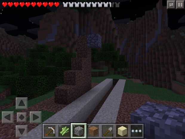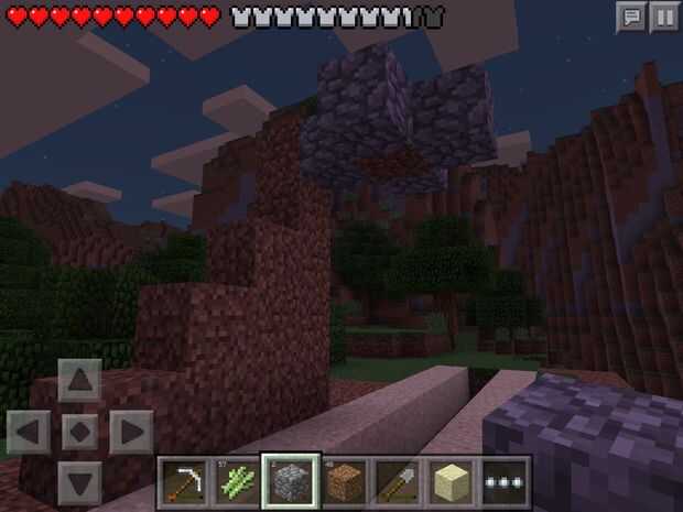 Coloque un bloque de tierra en la parte superior el paso más alto de los andamios, a continuación, coloque un bloque de piedra hacia los lados para que cuelgue sobre la primera fila de la arena. Conecte otro bloque de tierra a este bloque de piedra, luego colocar adoquines contra todos los lados. Quitar los 2 bloques de tierra solo colocaste (los adoquines bloques deben ser ahora una flotación cruzada 5 por encima de la arena y la fosa.