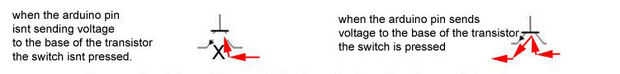 Si arduino envía corriente a la base. Se pulsa el botón. Si ninguna corriente es aplicada no se presiona el botón.