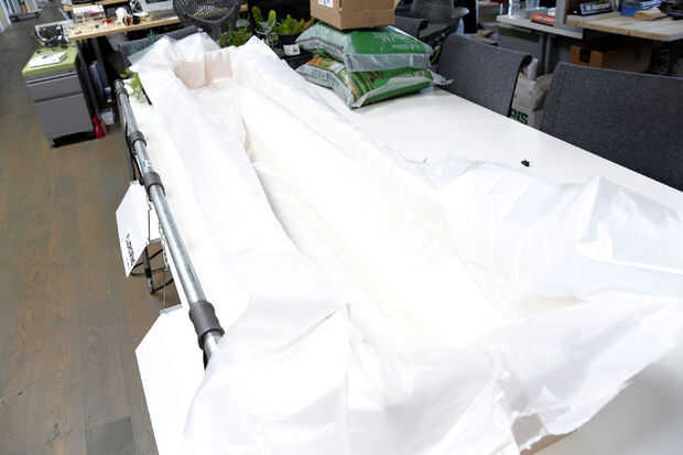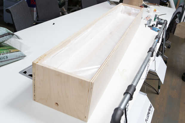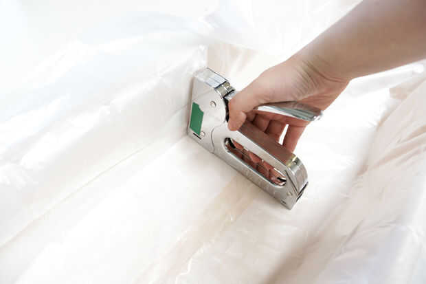 Línea interior de la caja con una cubierta plástica de 2mil y engrape cuidadosamente en su lugar.