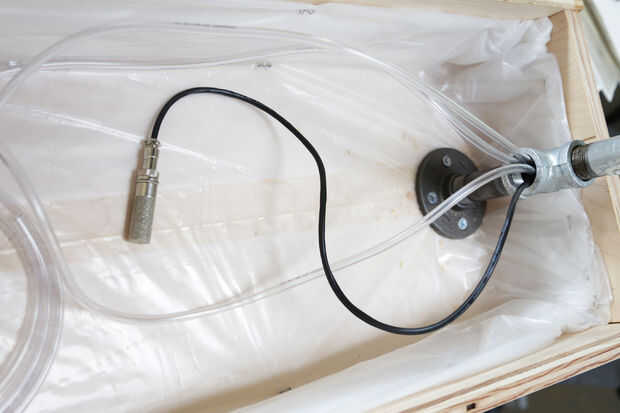 Como el tubo de vinyle, pasar el cable desde el sensor de suelo en la Unión en T y hacia fuera de la maceta.