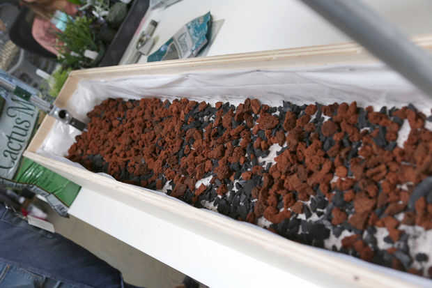 Difundir un layrer de tierra y lava en la parte inferior de la maceta para tener en cuenta la falta de drenaje.