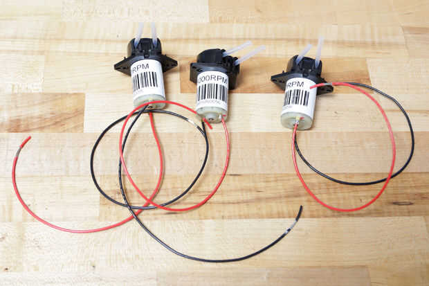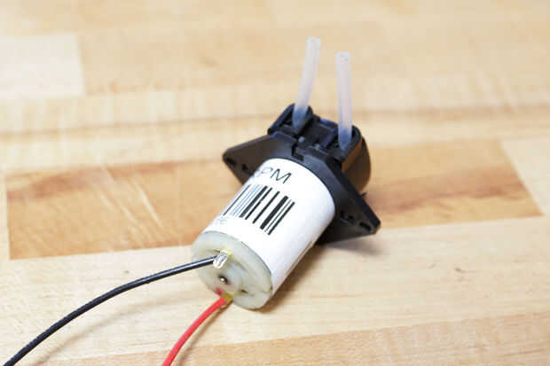 Conecte un cable rojo a la terminal de uno de los motores de la bomba peristáltica +.