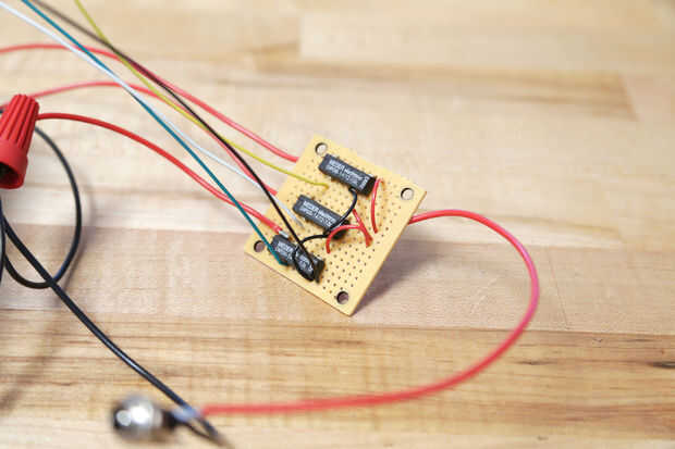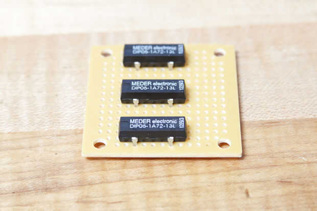 Los tres relés SPST a la placa de circuito de la soldadura.