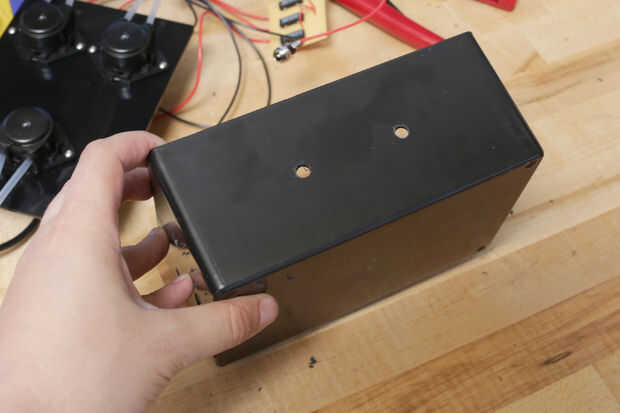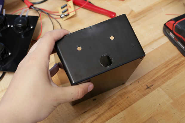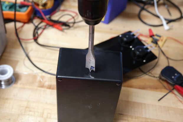 Luego perforar dos 1/4" espaciados aparte centrada sobre la misma cara de la caja de 2".