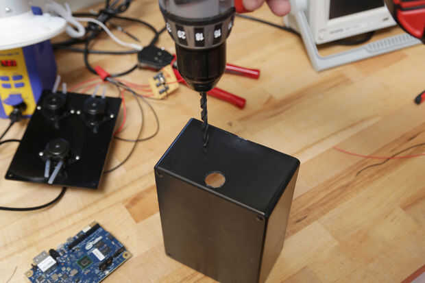 Coloque la Junta Galileo y relé dentro de la caja y hacer marcas en la parte inferior de cada uno de sus agujeros respectivos.