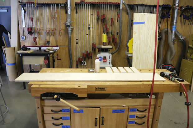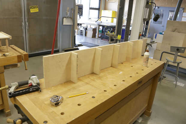 Espacio las cinco 10,5 "x 3" piezas de madera uniformemente a lo largo de la legnth del Comité 71,5 "x 3".