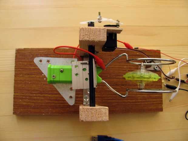 Aquí está mi segunda versión de un juguete automatizado usando un interruptor de láminas de mi bicicleta para controlar el servo que se inclina el juguete hacia arriba y hacia abajo. También utilizar una rutina de suavizado en el código de Arduino pa