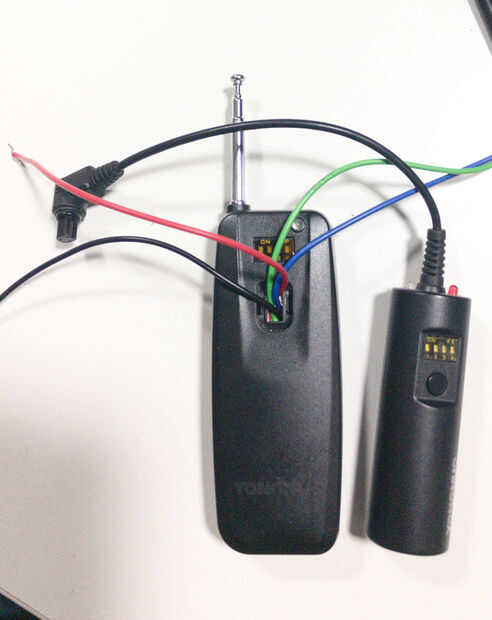 Para este paso he utilizado un sistema de Yongnuou Wireless Trigger simple que está disponible comercialmente. He he pinchado una foto de ella para su referencia. Sin embargo tenemos que modificarlo un poco. El transmisor del gatillo debe abrirse y los cables de corriente y los cables de disparo necesitan sacarse para conectarse a nuestro arduino. Hay una línea común que entra en contacto con otro uno para enfocar y ambos en tacto, póngase en contacto con otro plomo para hacer clic. Howeverm, asumiremos que la cámara estará en foco todo el tiempo ya que las distancias entre la cámara y el producto de disparos son constantes y por lo tanto no sería necesario ningún sistema de enfoque de ser parte de este proceso.