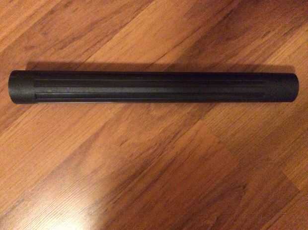El conducto de salida es un tubo simple para garantizar que el alimento de animal doméstico aterriza en el recipiente, no en todo el piso. Para hacerlo, todo lo que necesita es algún tipo de tubería con un diámetro de al menos 2 centímetros y alguna cinta adhesiva para conductos. He utilizado un tubo de vacío grabado encima de mi tazón de perros.