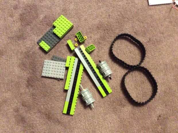 Surtido de piezas de lego, incluyendo árboles, pistas y ruedas. (Yo tengo la mía de mi lego mindstorms kit)