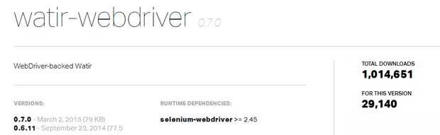 Webdriver Watir es una gema de Ruby que permite controlar un navegador física con código Ruby. Las ventajas de este en comparación con algo que no utiliza un navegador web física es que esto permite javascript, ajax y otras tecnologías de lado del cliente ejecutar y manipular el contenido que le permite un mayor control sobre los datos que usted tiene acceso a. La desventaja de esto pero es que tener un navegador web física es un poco más lento luego otras tecnologías que no.