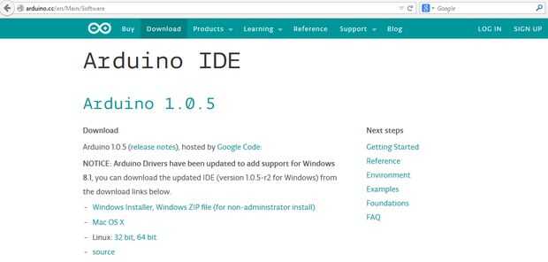Descargar el IDE de Arduino para su plataforma de http://arduino.cc