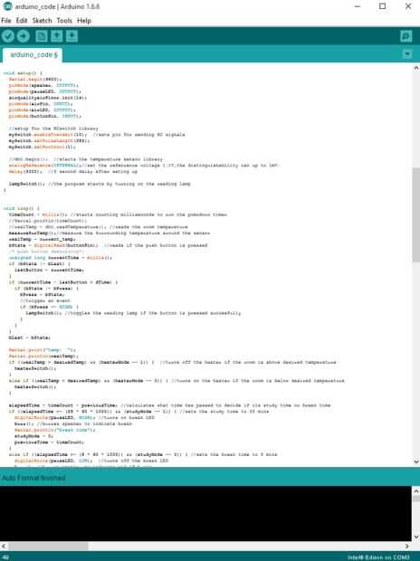 El código está escrito en su mayoría por mí basado en anteriores proyectos y bocetos de ejemplo de las bibliotecas. El código para trabajar el sensor de temperatura de grove es en su mayoría de Bruce Qin, que encontré en este sitio. El código de sensor de temperatura tiene la ventaja de no necesitar una biblioteca externa. Encontrar el valor promedio del sensor de calidad del aire fue hecho por esta guía por David A. Mellis.