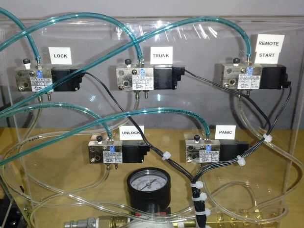 Había montado todo en un soporte de acrílico del folleto. Un tablero de madera funcionaría igual de bien. Los solenoides fueron etiquetados para saber qué necesidades a que actuador de la manguera.