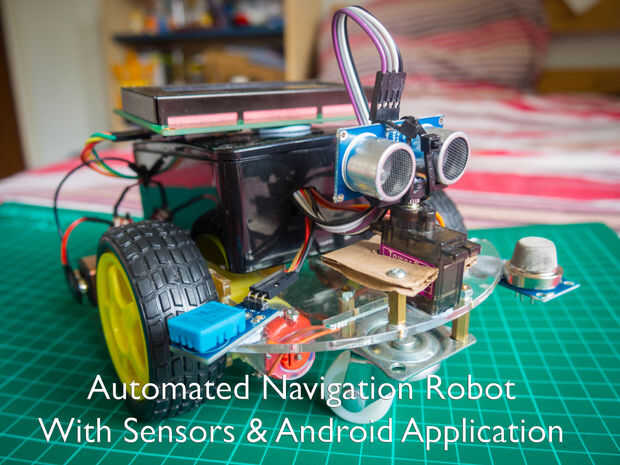 Esto se ha hecho cientos de veces así que quería mezclar un poco, para ello he querido incluir algunos sensores adicionales en combinación con un módulo Bluetooth, esto permite que el robot recoger datos de condición ambiental luego transmitirla a una aplicación Android, desde la aplicación Android también puede cambiar el estado del robot de modo navegación a ralentí donde el robot seguirá siendo inmóvil pero todavía transmite datos del sensor.