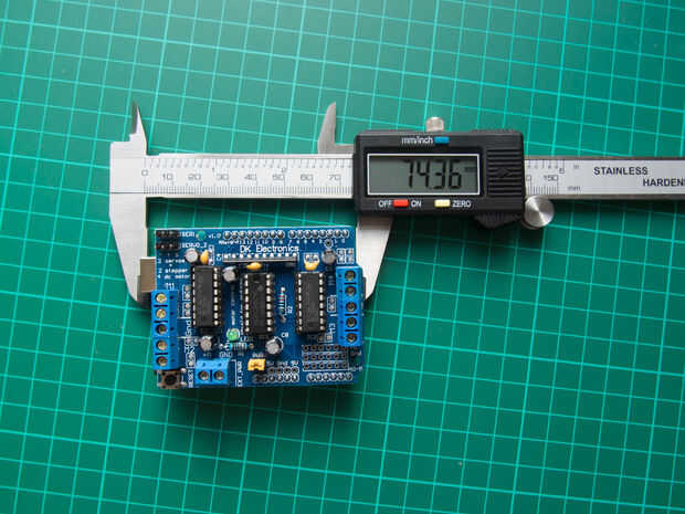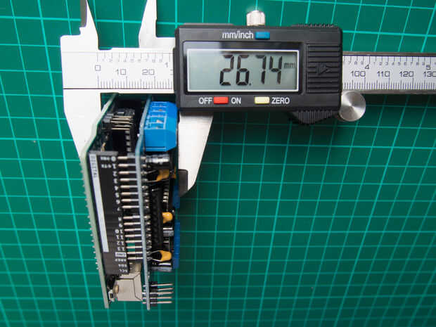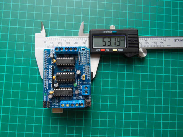 Medí la altura de la Arduino UNO y Protector Motor L293D para asegurarse de que tenía el espacio para mis otras conexiones.