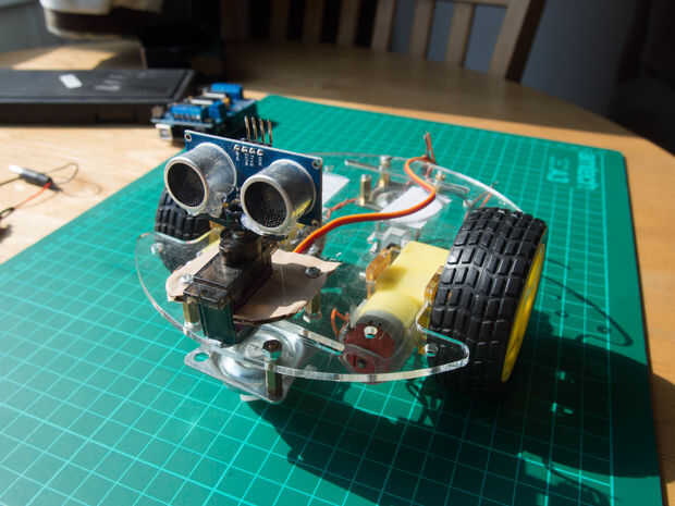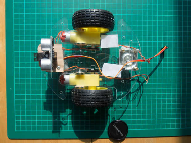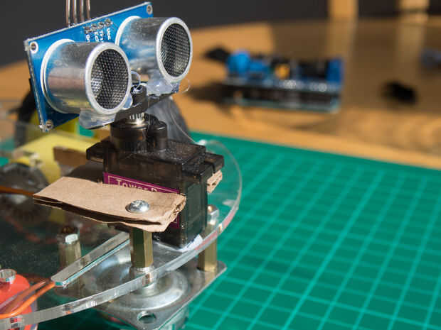Ahora que el chasis ha sido construido, el primer paso es montar el Servo y HC-SR04 para la evitación del obstáculo.