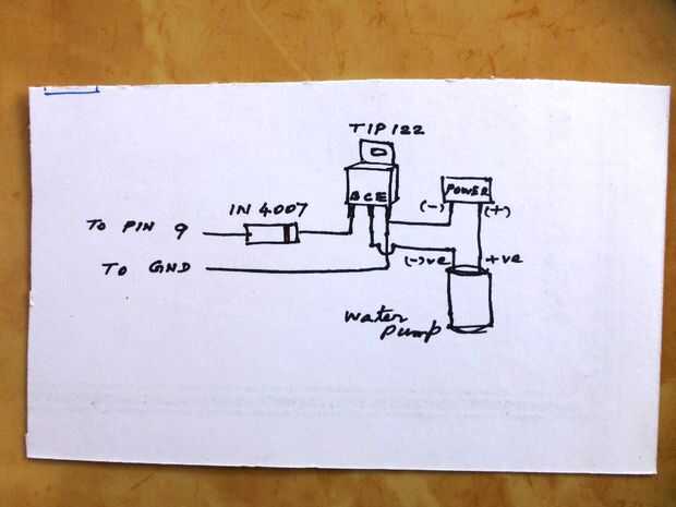 - Conectar el polo de ve (-) de la bomba de agua con conector de colector del Transistor