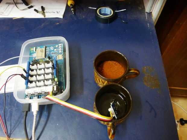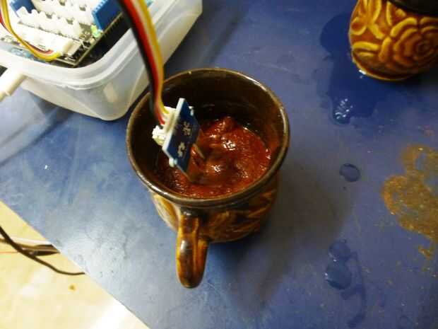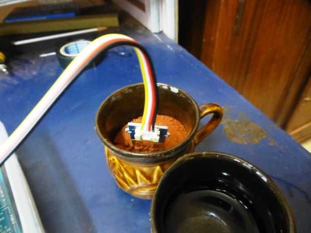 - Coloque el sensor de humedad en el suelo en una taza o cualquier otro utensilio