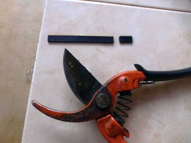 Aunque tenga solamente un jefe del pin de la hilera con 4 patillas, voy a hacer un 6 x 1 (6 pernos x una fila) pedazo de jefe del pin hembra para nuestro circuito. Aquí conseguí una tira larga del jefe del pin de conmigo. Así que vamos a sacrificar un pin del conector y cortar la longitud requerida.