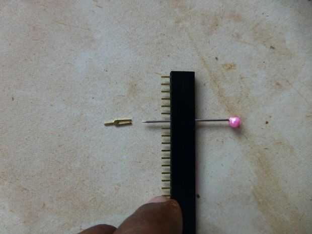 - Tomar un arte alfiler o aguja y pase por el séptimo agujero de un extremo.