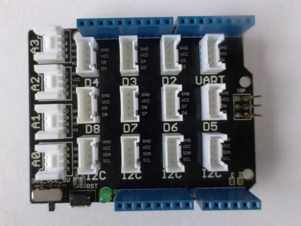 Grove Base V2 de Shield para Arduino : escudo de la Base hace más fácil para la conexión de diferentes sensores con el tablero de Edison de Intel. Sus conexiones son las mismas que Arduino Uno / Edison Breakout Junta, por lo que puede ser insertado directamente encima de la placa Breakout de Edison