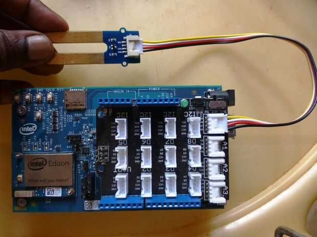 Una vez completado el montaje, controladores de dispositivo necesario instalado y el lenguaje de programación, está listo para conectarse el tablero de Edison arboleda Base escudo y módulo de Sensor de humedad de Grove.