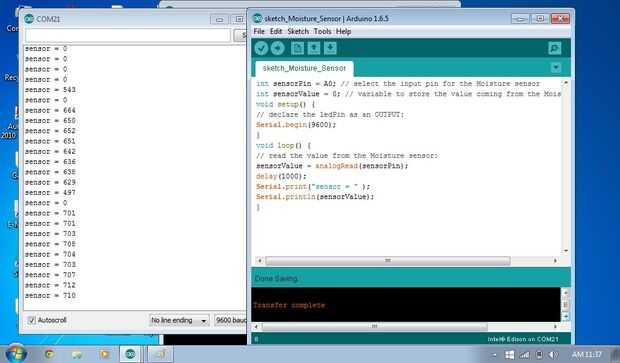 Aquí usted puede ver que el valor inicial del sensor se establece en cero. Así que cuando el sensor está en el aire abierto, mostrará valores de ' 0 en el Serial Monitor. Cuando se sumerja el sensor de humedad en agua, obtendrá los valores más altos. Por favor vea las dos capturas de pantalla por encima de referencia. Tenga cuidado de que los circuitos electrónicos del sensor no se sumergen en agua que cortocircuito y dañar el Sensor.