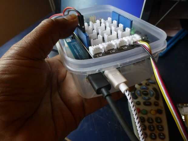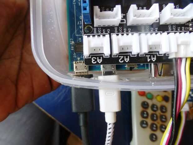 Coloca el tablero de Edison dentro de un estuche de plástico adecuado, los orificios perforados y fija la placa con tornillos a la caja. También he hecho las aberturas necesarias para los cables USB y adaptador de corriente. El módulo de sensor de humedad y el circuito para operar la bomba pueden conectarse de la parte superior. Una palabra de precaución aquí... La antena WiFi de la Edison se encuentra bajo el tablero. Si adjuntar el sistema con una funda protectora, no es capaz de usar WiFi con Intel Edison.