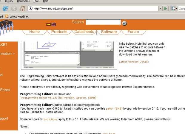 Descargar el picaxe programación sistema http://www.rev-ed.co.uk/picaxe/