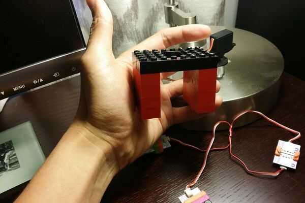Crear una caja de Lego para guardar la parte que no se mueve del servo en lugar. El recinto se asegura que el acoplamiento de disco como giros, en lugar de su motor todo. El orificio rectangular en la parte superior de la caja es donde irá la parte que no se mueve de la broca motor servo.
