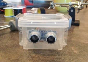 con un nuevo sensor de ultrafondo de PING. En pocas palabras este sensor usa el sonar para medir la distancia a un objetivo específico. El sensor se ve como un conjunto de ojos. Un sensor envía un pulso ultrasónico y el otro sensor que mide la cantidad de tiempo que tarda en recuperarse. Aplique algunos cálculos que implican la velocidad del sonido y puede llegar a un cálculo de la distancia.