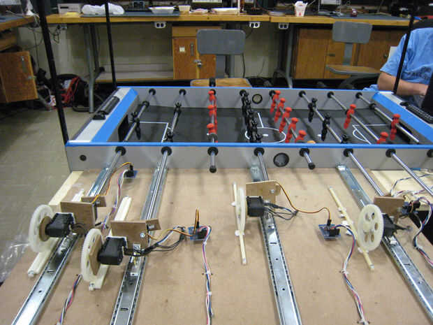 Restricciones de presupuesto para el prototipo redujo el proyecto algunos y mantuvieron su funcionalidad al mínimo. Motores adecuados a los jugadores se mueven a una velocidad competitiva fueron encontrados para ser muy costoso, para que servos de menor tuvieron que ser utilizada.