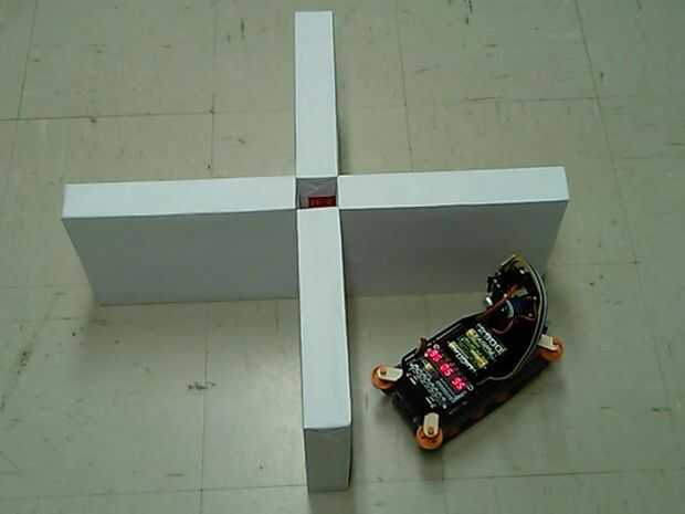 Usando un servo montado compuesto sensor infrarrojo y un sensor ultrasónico hacia adelante fijado, el Rover intentará mantener una distancia fija de un muro situado a la izquierda.