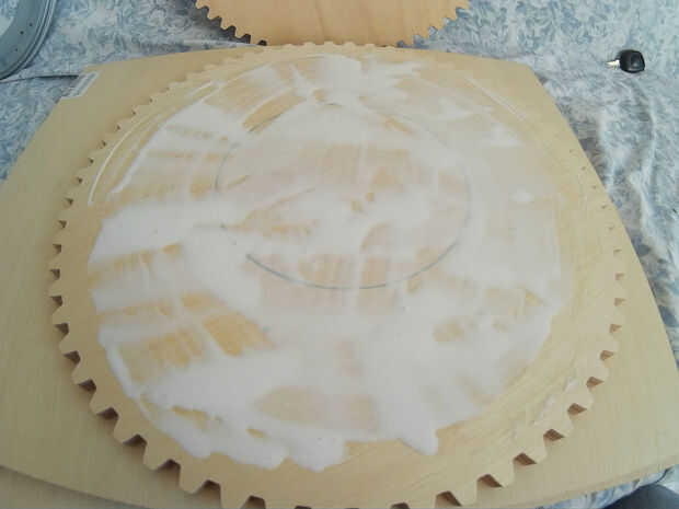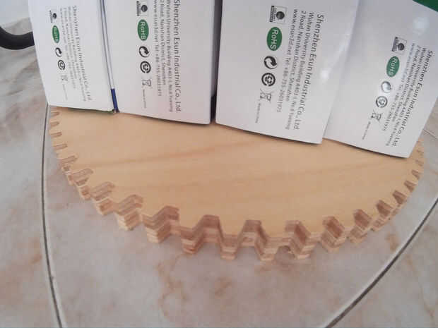 Asegúrese de alinear las 2 piezas de una mejor forma posible después de aplicar el pegamento. Coloque un objeto pesado encima de las 2 piezas de madera contrachapada mientras el pegamento está perforando. Para asegurar una fijación fuerte, perforar algunos tornillos para madera en la parte inferior de la gran marcha.