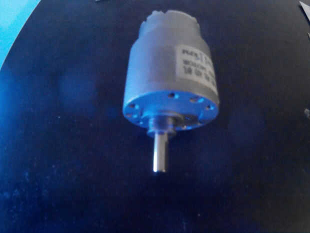 Para la transmisión, vamos a utilizar un motor eléctrico. Primero probé con una NEMA 17 Motor sin éxito. No tiene suficiente par para hacer el plato giratorio spin con una en la parte superior.
