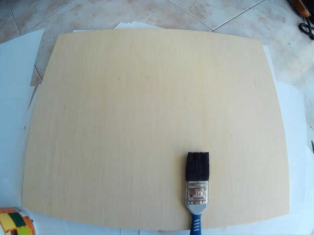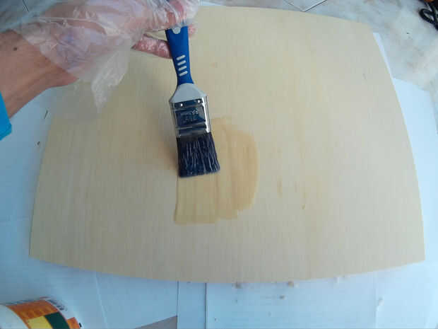 Después de las dos piezas de madera contrachapada son bien resecos, aplique dos o tres cotes de barniz de piso madera utilizando una brocha. Deje secar entre capas.
