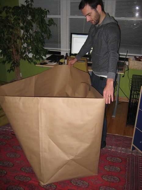 Una vez que han doblado las cuatro esquinas, reunir las dos costuras y en su lugar con cinta adhesiva. Durante este whold sosteniendo y grabar el proceso usted probablemente querrá alguien sosteniendo los bordes para arriba para usted.