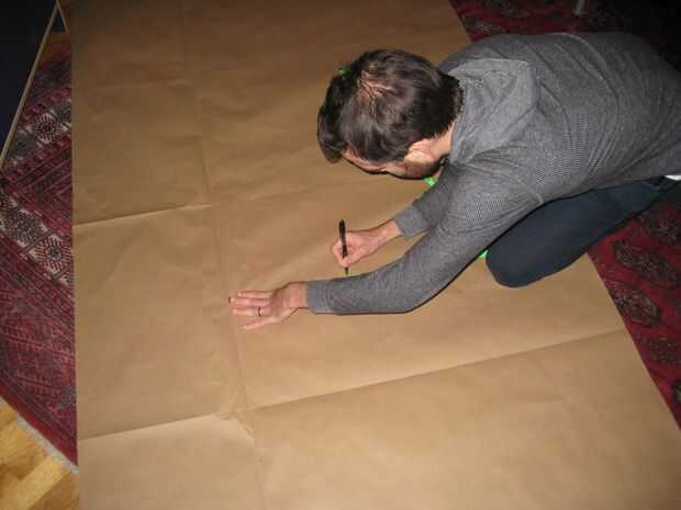 Encienda el foco de las secciones segunda y Quinta de sextos, contando desde el lado longitudinal. Permiten decir que está de pie en el borde largo y el otro lado largo con el pliegue perpendicular está enfrente de usted. Para cada uno, que desea marcar un punto que está en el centro de columnas y ancho de la mitad de la columna por debajo el pliegue perpendicular.