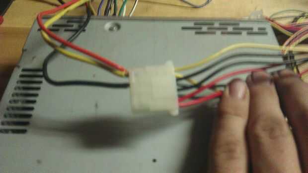 Uno de los cuatro conectores con los cables amarillos, negro y rojos en él