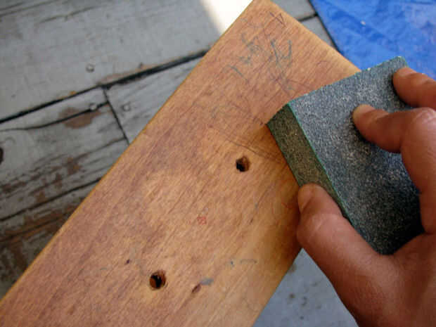 Usé un tabique de peso mientras que el conjunto de cola, ya que no tengo pinzas bastante grandes, pero nada pesado con una base plana debería funcionar. Limpie cualquier exceso de cola madera antes de que se seque.