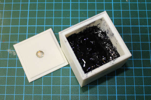 Me di cuenta de que los bloques tienden a caerse, si el peso de uno en la parte inferior es demasiado ligero. Así que mezclé algunas tiras plomo con pegamento caliente para hacerlo más pesado.