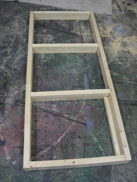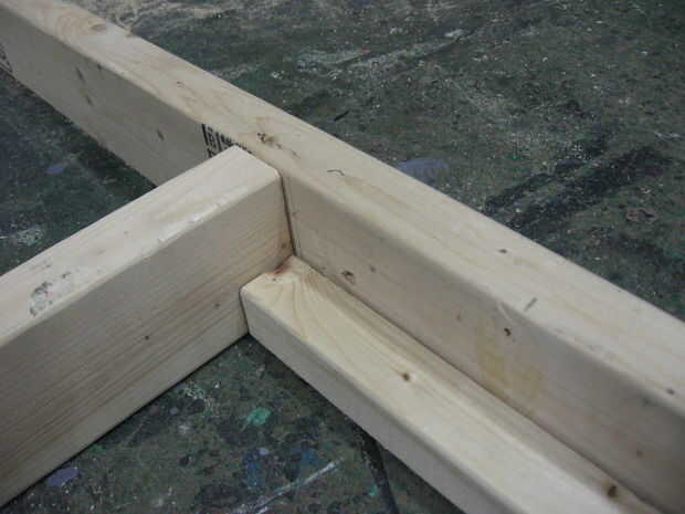 24" los convierten en piezas de 2 X 4 al ras y descanso dentro de la larga 63" 2 X 4 y a tope hasta 2 X 2 19" dentro de la esquina. Marca donde va la primera pieza de la Cruz. Repita con el otro lado.