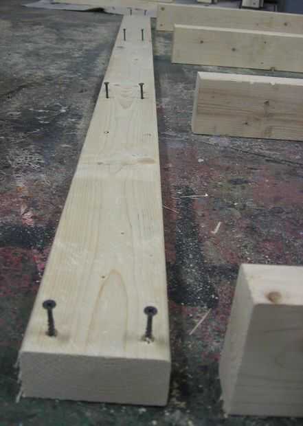 Se hunde 2 1/2" tornillos en los agujeros mientras el 2 X 4 está en el suelo. Esto hace un poco más fácil a la Asamblea.