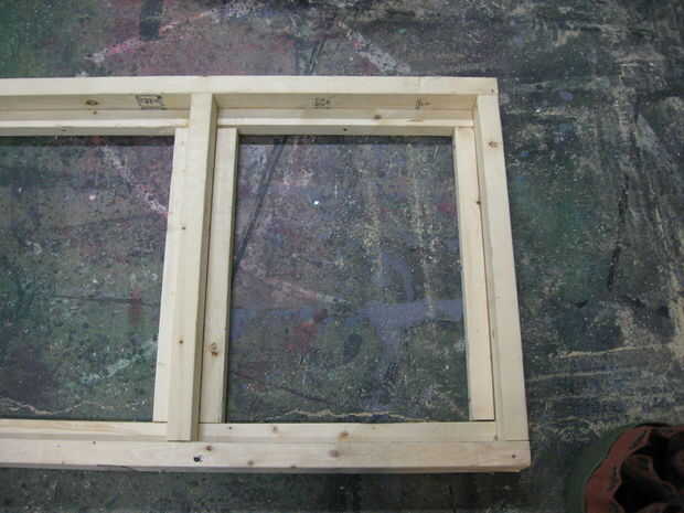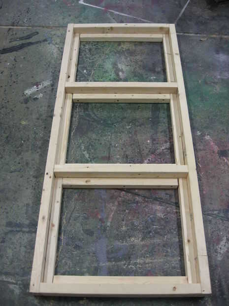 Las longitudes de 19" contra el 2X4s largo 63", y las longitudes 21" contra cada 24" Cruz la pieza, formando un cuadrado interior en cada una de las tres secciones.