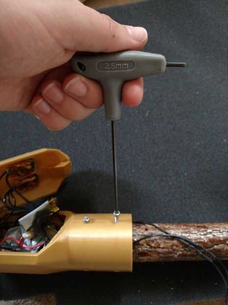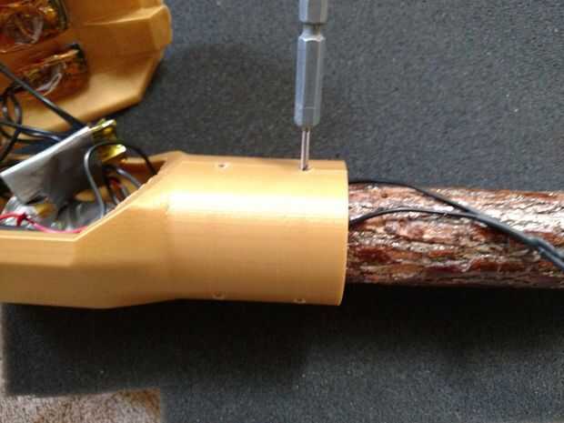 Para asegurar la parte superior de personal para el palo, 6 agujeros deben taladrarse para acomodar los tornillos de 3mm que sujetan los dos.