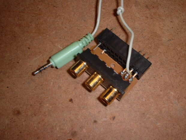 Solía alimentar a vídeo compuesto y tarjeta gráfica de mi PC, el audio en línea a través de un adaptador de Euroconector hackeado. Esto era un dolor con respecto a la conmutación de entradas detrás de mi PC, sobre todo porque el actual video salidas de audio en mono, y tuve que unir conectores con un clip para alimentar los canales L & R. Esto es ilustrado en la introducción.