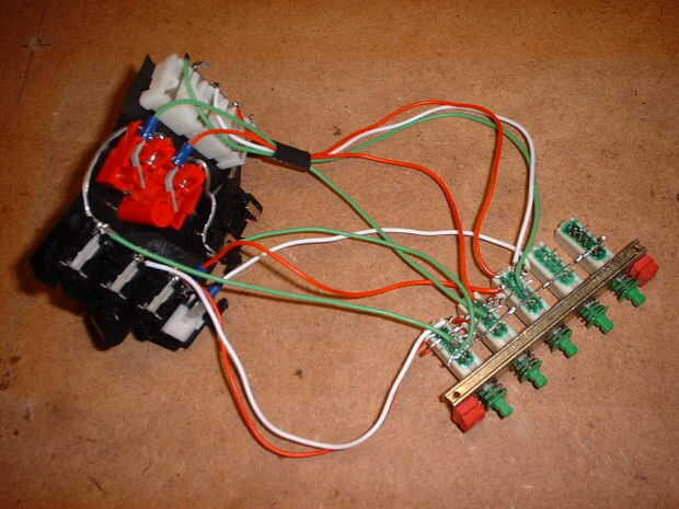 Observe en las imágenes que hay más longitud de cable entre los interruptores y los enchufes que se necesita: esto es para ayudar en el montaje de ambos dentro de la bandeja.