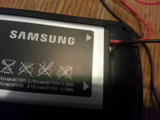 La soldadura de sus cables o enchufes, en los terminales que usted encontró ser positivos y negativos. tratar de soldar a la superficie exterior de la terminal (que hace contacto con la batería). Que tenga que tomar un cuchillo o navaja de afeitar y tallar algunas de plástico, con el fin de permitir que la batería de ajuste mientras que los cables se sueldan.