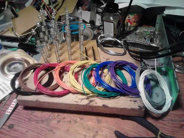 Si construir un cubo en una placa de circuito impreso puede hacer algunos de los cables en el circuito usar alambre desnudo, pero otras veces que quieres aislado de alambre para asegurar la costumbre corta. Los cables que conectan el microcontrolador que probablemente desee aislado demasiado. de hecho podría todo aislado, pero muchas veces es mejor mirar menos aislamiento. A veces un bonito arco iris de color es agradable, como la primera foto de arriba.